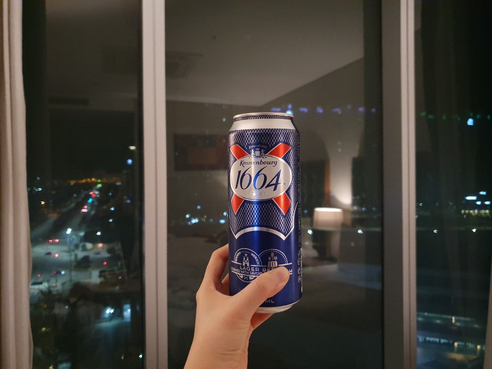 한적한 송도의 신도시를 내려다보며 시원한 맥주를 한 잔 마십니다.